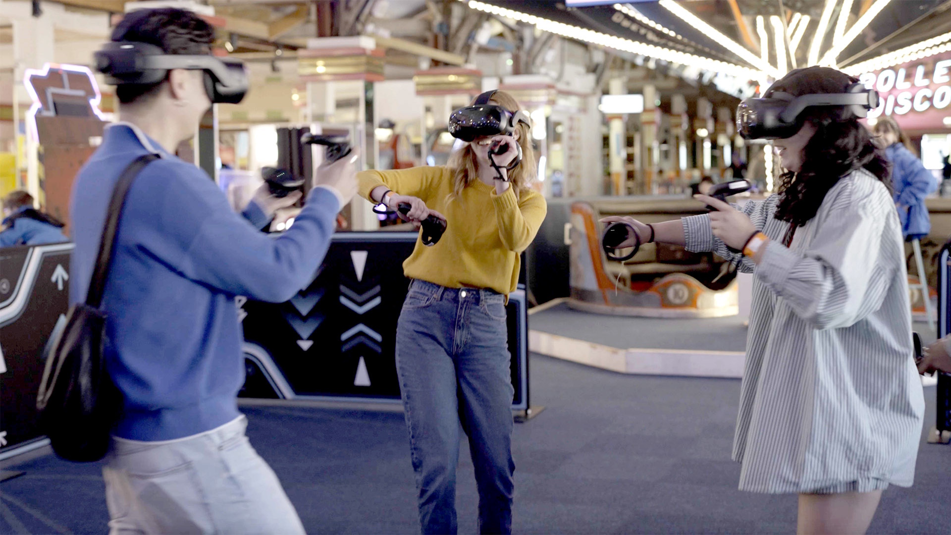 Unlike traditional VR arcades where you sit or stand in one spot, Free Roam VR lets you: