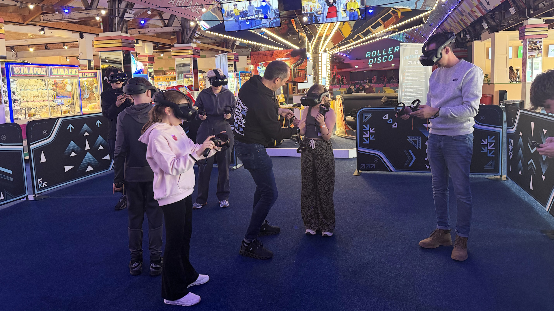 Step into an interactive party experience like no other — a place where imagination becomes reality and adventure begins the moment you put on your headset. Welcome to Virtual Realities Parties and Events at Dreamland, home of Thanet’s leading Free Roam VR Arena. Explore inside vast virtual worlds in a completely wireless environment. This isn’t VR as you’ve seen it before. This is full‑body, full‑scale, free‑roaming immersion.
